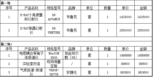 為進(jìn)步提高教學(xué)科研水平,西北師范大學(xué)理科分析測試平臺建設(shè)項(xiàng)目對儀器設(shè)備以公開招標(biāo)形式進(jìn)行采購,近日對中標(biāo)結(jié)果進(jìn)行公布,珀金埃爾默、布魯克、上海儀電分析以及安捷倫等品牌儀器中標(biāo)。此次采購共分為5包,其中1、2包為分析儀器類,1包中標(biāo)金額為3975000元,2包中標(biāo)金額為2469866元。